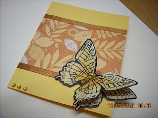 Идеята за тези пеперуди харесах отдавна в някой от многото блогове, които следя. Хрумна ми, че мога да я използвам сега за новото предизвикателство от Кари. Докато оцветявах с дистреса, се сетих, че може да ги отпечатвам на цветни листа, но това ще го осъществя в друг проект:) Исках, да направя нещо по семпло- да изрисувам спирали, тук таме камъчета, но не ми стигна търпението и изплолзвах дизайнерска хартия. Мисля, че и така се получи добре, пък дали е достатъчно елегантна и стилна, ще прецените вие:)